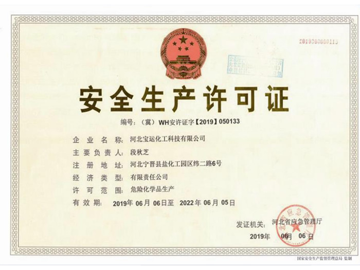 資質(zhì)安全生產(chǎn)許可證齊全,目前河北省內(nèi)證件齊全的沒幾家,并且在省級(jí)園區(qū)內(nèi)。